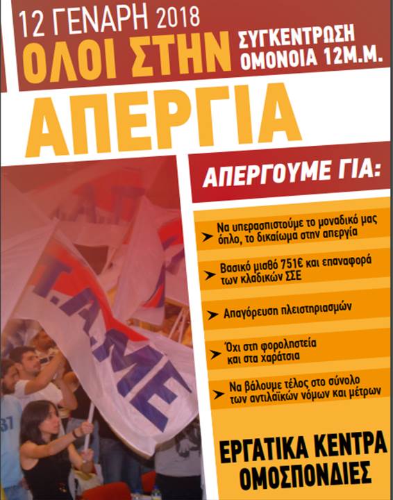 ΌΛΟΙ ΣΤΗΝ ΑΠΕΡΓΙΑ ΠΑΡΑΣΚΕΥΗ 12/1 ΣΤΙΣ 12:00 ΣΤΗΝ